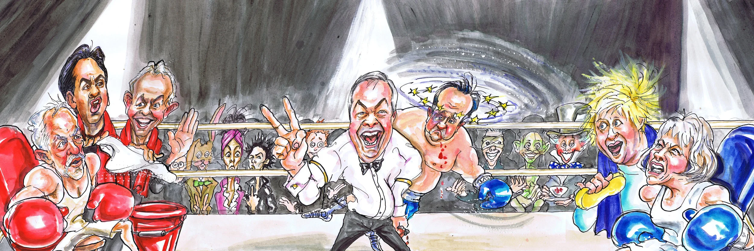 /Just had a plug in the Times of Tunbridge Wells, our local paper. Have drawn fold out CD cover for Insane Society's new album- Too left to be right-Too right to be wrong. Lots of political caricatues ; Tony Blair Ed Miliband , Jeremy Corbyn,Nogel Farage David Cameron, Boris Johnson,Teresa May. Plus a few others,Prince,Sid Viscious,David Bowie as Lazarus,Golem and the Mad Hatter. The Brexit referendum will run and run.